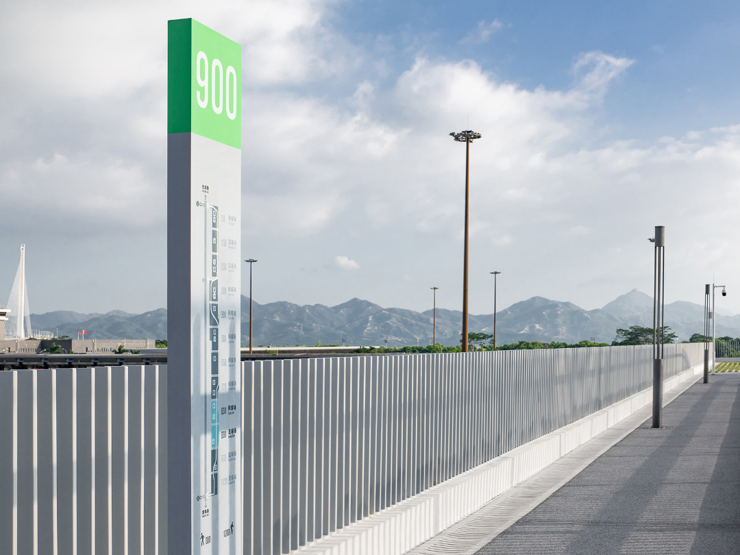 本项目还有许多细节方面:如入口处分配有宏观标牌,突出显示它们并确保从底层和远处都能明确看见。标牌塔沿着条带以 100m 的增量放置,指示位于该区域的设施,微型标志可识别100m标记内的特定目的地。标志也各不相同,有长凳、垃圾桶等的形式清晰可见。