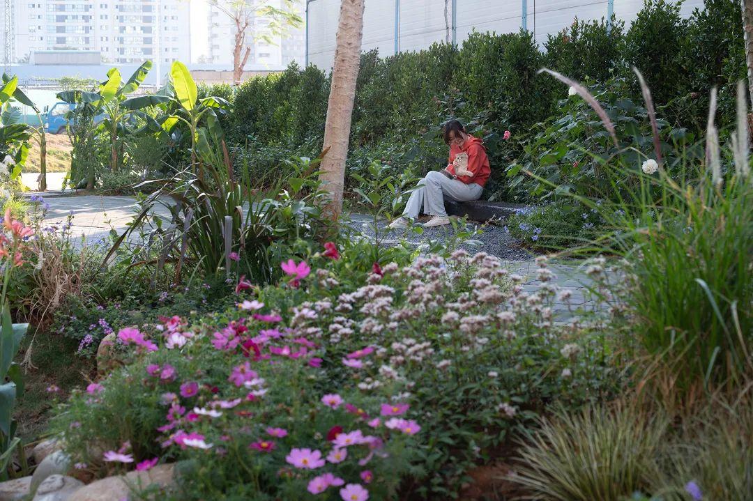 还为儿童打造专属游乐设施,沙坑、梅花桩以及跷跷板为基础性的玩乐设施、无毒且芳香的“香香动物园”,让儿童可探索、可休憩、可学习,在游戏和探索中收获知识。