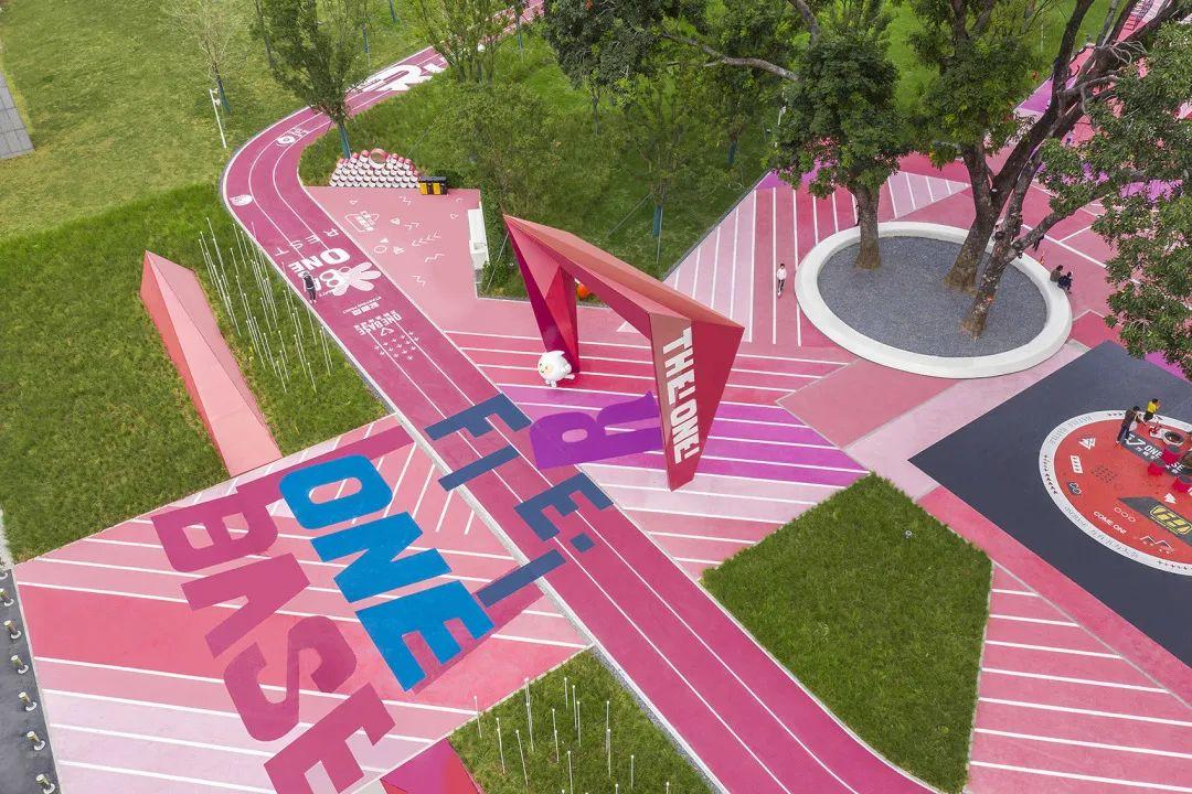 贯穿功能场所的跑道犹如一条充满线索的游戏导向路线图,穿梭地形之间,场地之间,为跑者增加不同纬度的趣味跑步体验感受。