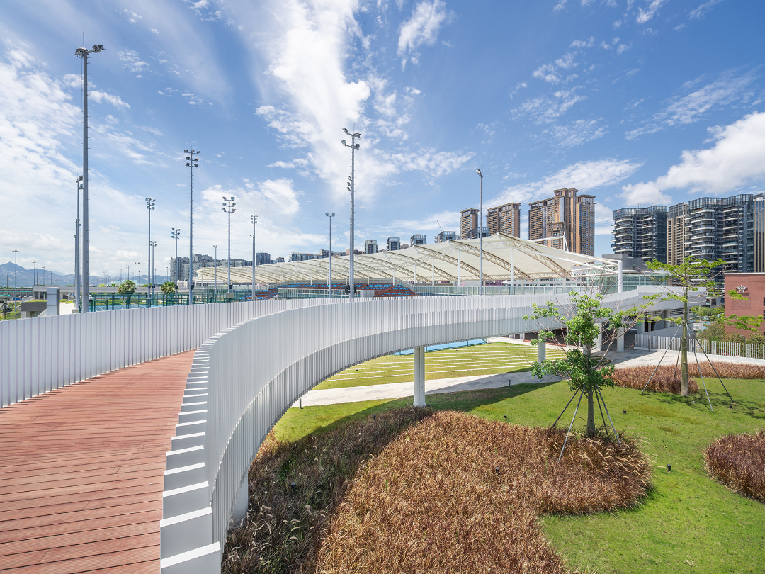 建成后屋顶花园自身的视觉体验感倍增,从中可以欣赏到周围的城市景观——深圳天际线与深圳湾。